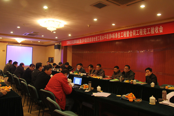 2012年1月11日,江西省五河及鄱陽湖區(qū)重點(diǎn)圩堤應(yīng)急防滲工程建設(shè)項(xiàng)目部在南昌市主持召開了水平防滲4標(biāo)單位工程暨合同工程完工驗(yàn)收會(huì),并順利通過了單位工程暨合同工程完工驗(yàn)收。驗(yàn)收會(huì)由省河湖局許盛豐處長主持,各參建單位代表到會(huì)并作了匯報(bào),公司吳鐵凡總工程師、工程部郭洪有經(jīng)理等參加了驗(yàn)收會(huì)。