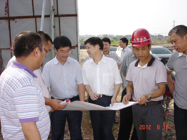 廖瑞釗副廳長深入查看了工程施工現(xiàn)場,聽取了業(yè)主、監(jiān)理和我公司施工管理人員對工程建設(shè)情況的匯報:項目部本著“征地拆遷好一段,施工一段”的精神,加快施工進度,確保施工質(zhì)量,工程進展比較順利,目前主體工程已完成80%左右,計劃于2012年9月底項目全面完工。廖瑞釗副廳長對工程進展表示非常滿意,他要求參建各方再接再厲完成好下一步工作,要進一步提高認識,全面落實安全度汛措施,確保工程質(zhì)量與安全度汛。