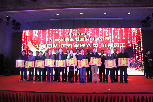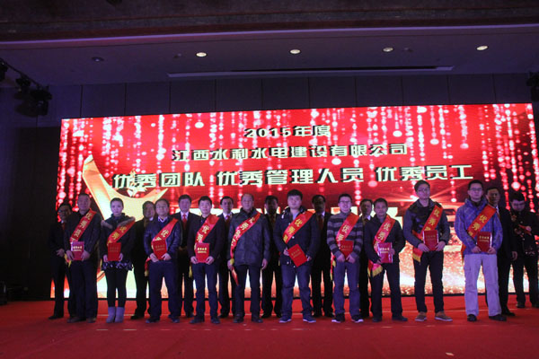 年會上,公司總經(jīng)理徐洪良宣讀了2015年優(yōu)秀團隊和先進個人表彰決定,并希望各單位和廣大員工以優(yōu)秀團隊和先進個人為榜樣,胸懷全局,銳意進取,立足改革,不斷創(chuàng)新,為江西水建燦爛的明天而努力奮斗!
