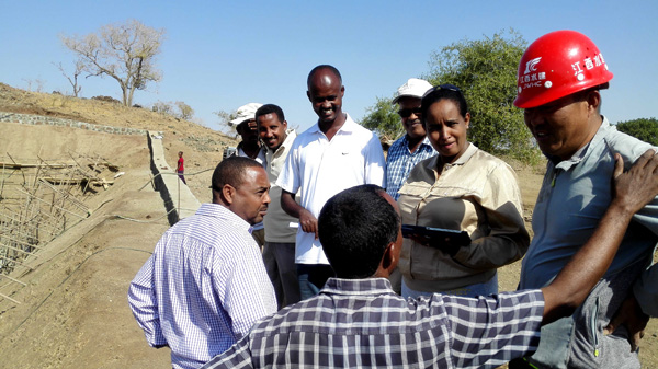 我方人員向Felete Werku女士匯報(bào)工程概況