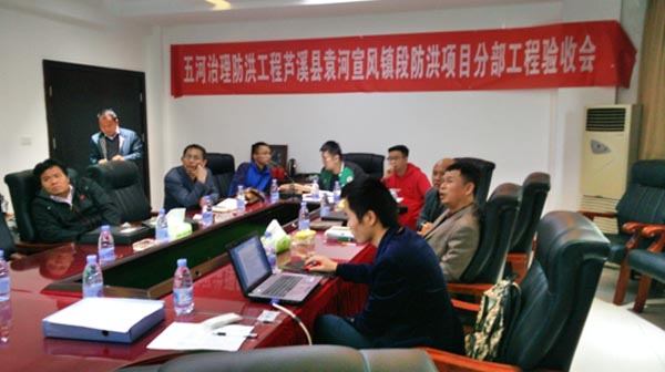 集團(tuán)資訊 2016年10月31日,我公司承建的五河治理防洪工程蘆溪縣袁河宣風(fēng)鎮(zhèn)段防洪項目在蘆溪縣水務(wù)局會議室主持召開了分部工程驗收會議,分部工程驗收工作組由江西省五河治理防洪工程項目部、蘆溪縣五河治理防洪工程項目部、江西省水利規(guī)劃設(shè)計院、江西省建洪工程監(jiān)理咨詢有限公司以及我公司等相關(guān)單位的代表組成。公司工程部郭洪有出席了此次驗收會議。