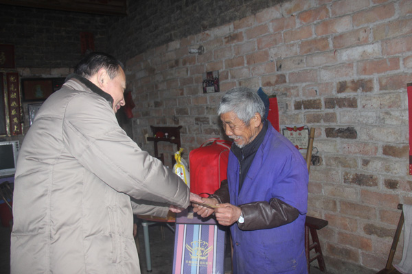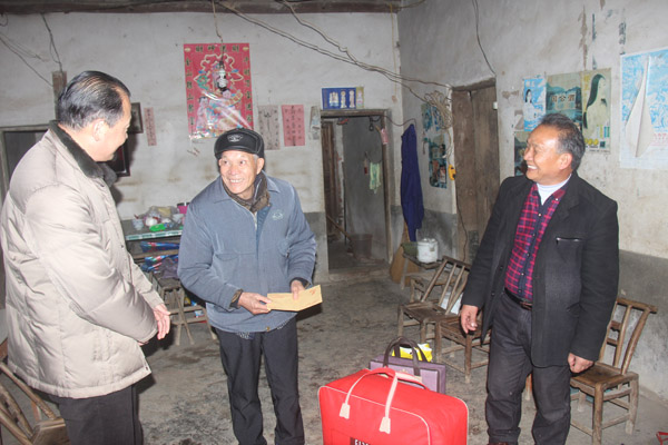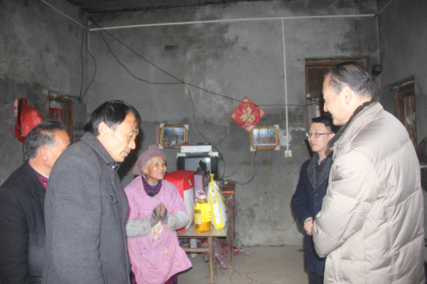 在貧困戶羅華妹家里,當(dāng)老人接過大米和食用油等慰問物品后,頓時(shí)眼含淚花,激動(dòng)的拉著史主席的手說:“這么冷的天,你們能來看我這個(gè)老太婆,我真的很高興,共產(chǎn)黨的政策真好!”,史主席鼓勵(lì)羅華妹說:“要堅(jiān)定信心,黨的政策很好,我們也會(huì)多想一些能改變家庭生活和增加收入的辦法,你們家里要積極配合黨委政府和村委會(huì)的工作,爭(zhēng)取早日脫貧致富。”