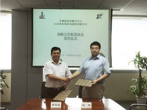 集團(tuán)資訊2017年5月15日,江西省水利水電建設(shè)有限公司與中鋼設(shè)備有限公司戰(zhàn)略合作框架協(xié)議簽約儀式在北京舉行。公司董事長王元旦與中鋼設(shè)備有限公司總經(jīng)理王建代表雙方簽署了戰(zhàn)略合作框架協(xié)議。公司海外公司副總經(jīng)理熊昊冠和中鋼設(shè)備能源與基礎(chǔ)設(shè)施部副部長閆永軍、國際市場部副部長王思奇、市場主管姬曉軍參加簽字儀式。王建表示中鋼公司有著海外平臺優(yōu)勢,江西水建擁有水利水電、房建和市政領(lǐng)域的技術(shù)優(yōu)勢,希望雙方以此次戰(zhàn)略合作簽署為契機(jī),借助各自在資源、業(yè)務(wù)等方面的綜合優(yōu)勢,在巴基斯坦市場以及其他國別市場攜手共進(jìn),推進(jìn)重點(diǎn)項(xiàng)目落地,共謀發(fā)展。公司董事長王元旦對中鋼設(shè)備的支持表示感謝。他表示此次合作將會(huì)是一個(gè)友好的開端,真誠希望雙方在國家“一帶一路”戰(zhàn)略指引下進(jìn)一步加深交流,探索多方位、深層次合作,實(shí)現(xiàn)互利共贏。