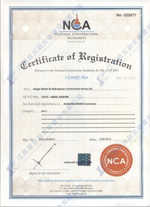 2013年3月份,肯尼亞國家建筑局(National Construction Authority)發(fā)出公告,要求所有在肯尼亞的建筑企業(yè),必須在肯尼亞建筑局注冊登記,提交相關(guān)資料,評出公司資質(zhì)等級。