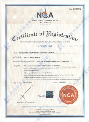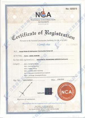 江西省水利水電建設有限公司肯尼亞分公司接到通告后,積極準備相關(guān)資料,憑借公司的技術(shù)實力和肯尼亞市場的良好業(yè)績,最終取得所有六項的一級證書。其中包括:水利施工一級,公路工程施工一級,房屋建筑工程施工一級,結(jié)構(gòu)施工一級,電力工程施工一級和機電工程施工一級,有力地提升公司的品牌影響,提升了公司資信競爭力,為公司在肯尼亞各項工作的全面深入開展創(chuàng)造了積極有利的條件。