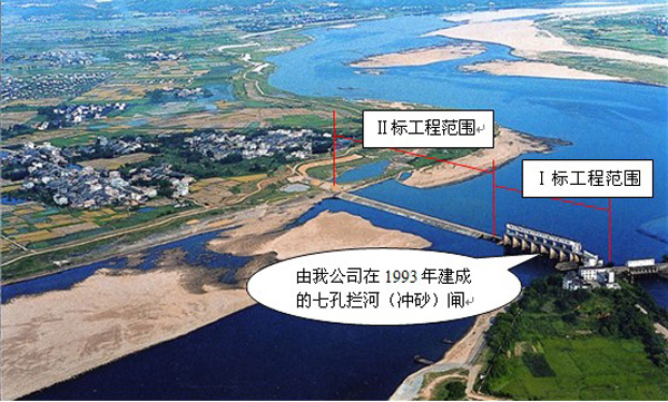 一期工程(即Ⅰ段段)的合同總金額為875.25萬元,實(shí)施的主要項(xiàng)目有砼溢流壩除險(xiǎn)加固工程、攔河閘下游防沖加固工程、建筑物(攔河閘、泄砂閘)表面處理工程、閘門檢修及啟閉機(jī)的制造與安裝,圍堰工程等,開工日期為2007年10月18日,完工日期為2008年5月6日,單位工程質(zhì)量等級(jí)核定為優(yōu)良。