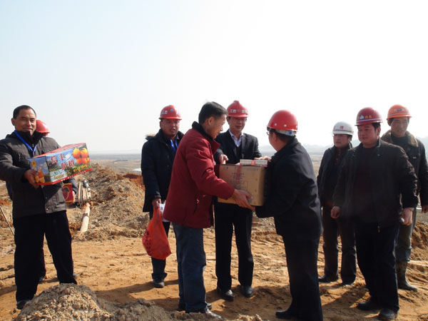 2011年2月3日,年初一上午,省河湖局郭澤杰局長一行到垂直防滲4標(biāo)親切看望并慰問項目部人員。我司董事長總經(jīng)理王元旦、上饒市水利水電工程建設(shè)監(jiān)理中心總經(jīng)理聶道淵等陪同慰問。