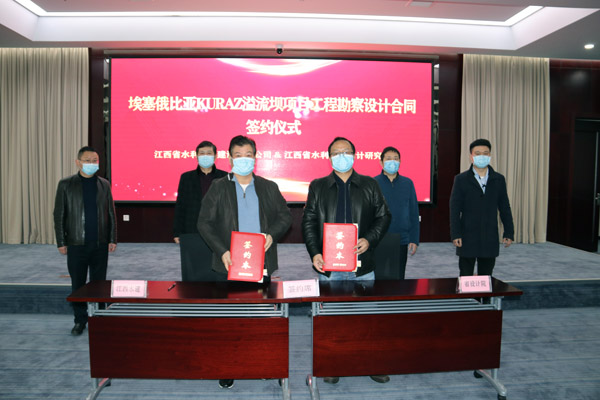 2月28日,我公司與江西省水利規(guī)劃設(shè)計(jì)研究院正式簽訂埃塞俄比亞kuraz溢流壩項(xiàng)目勘察設(shè)計(jì)合同。省設(shè)計(jì)院黨委書記江凌,副院長、黨委委員柯勁松,公司黨委書記、董事長王元旦,海外公司執(zhí)行董事張周平等領(lǐng)導(dǎo)出席簽約儀式。