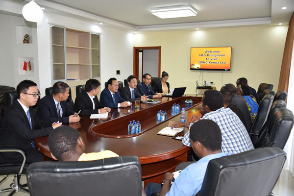 9月23日上午,盧旺達(dá)MIG考察團(tuán)一行來(lái)我肯尼亞公司參觀。海外公司總經(jīng)理黃鄭民,肯尼亞分公司總經(jīng)理賀翔,肯尼亞分公司副總經(jīng)理彭紅軍,肯尼亞分公司商務(wù)經(jīng)理黃飛翔,肯尼亞分公司財(cái)務(wù)經(jīng)理程炤宇等參加了會(huì)見。
