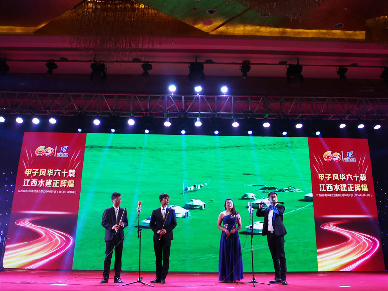 在喜慶熱鬧的開(kāi)場(chǎng)舞《盛世中華》樂(lè)曲聲中,拉開(kāi)了晚會(huì)的序幕,一曲優(yōu)美動(dòng)聽(tīng)的《今天是你的生日》,表達(dá)了對(duì)公司六十華誕的深情祝福,配樂(lè)詩(shī)朗誦《我驕傲,我是水建人》抒發(fā)了水建人對(duì)水利事業(yè)的熱愛(ài)與執(zhí)著,舞蹈《我的祖國(guó)》,展現(xiàn)了公司退休女職工的精神風(fēng)采和對(duì)公司的深厚感情,男聲獨(dú)唱《羅灣那個(gè)地方》,喚起了多少“羅灣水建人”曾經(jīng)在那里生活的記憶,來(lái)自上海的退休職工代表,為晚會(huì)帶來(lái)一首自己改編的歌曲《水建的朋友來(lái)相會(huì)》,詮釋了他們的激情與夢(mèng)想,最后,由公司高中層管理人員和總部員工組成的60人大合唱《團(tuán)結(jié)就是力量》,把晚會(huì)推向了高潮。團(tuán)結(jié)是我們的力量之源,團(tuán)結(jié)是企業(yè)騰飛的支點(diǎn),走過(guò)了六十年輝煌歷程的江西水建,正在昂首闊步踏上新的征程。讓我們團(tuán)結(jié)起來(lái),以必勝的信心,發(fā)奮的努力,繼承和發(fā)揚(yáng)老一輩水建人的精神和傳統(tǒng),擔(dān)當(dāng)起新一代水建人改革創(chuàng)新科學(xué)發(fā)展的光榮使命,繼往開(kāi)來(lái),解放思想,開(kāi)拓創(chuàng)新,凝心聚力,不斷開(kāi)創(chuàng)江西水建發(fā)展的新局面,創(chuàng)造更加燦爛的明天!