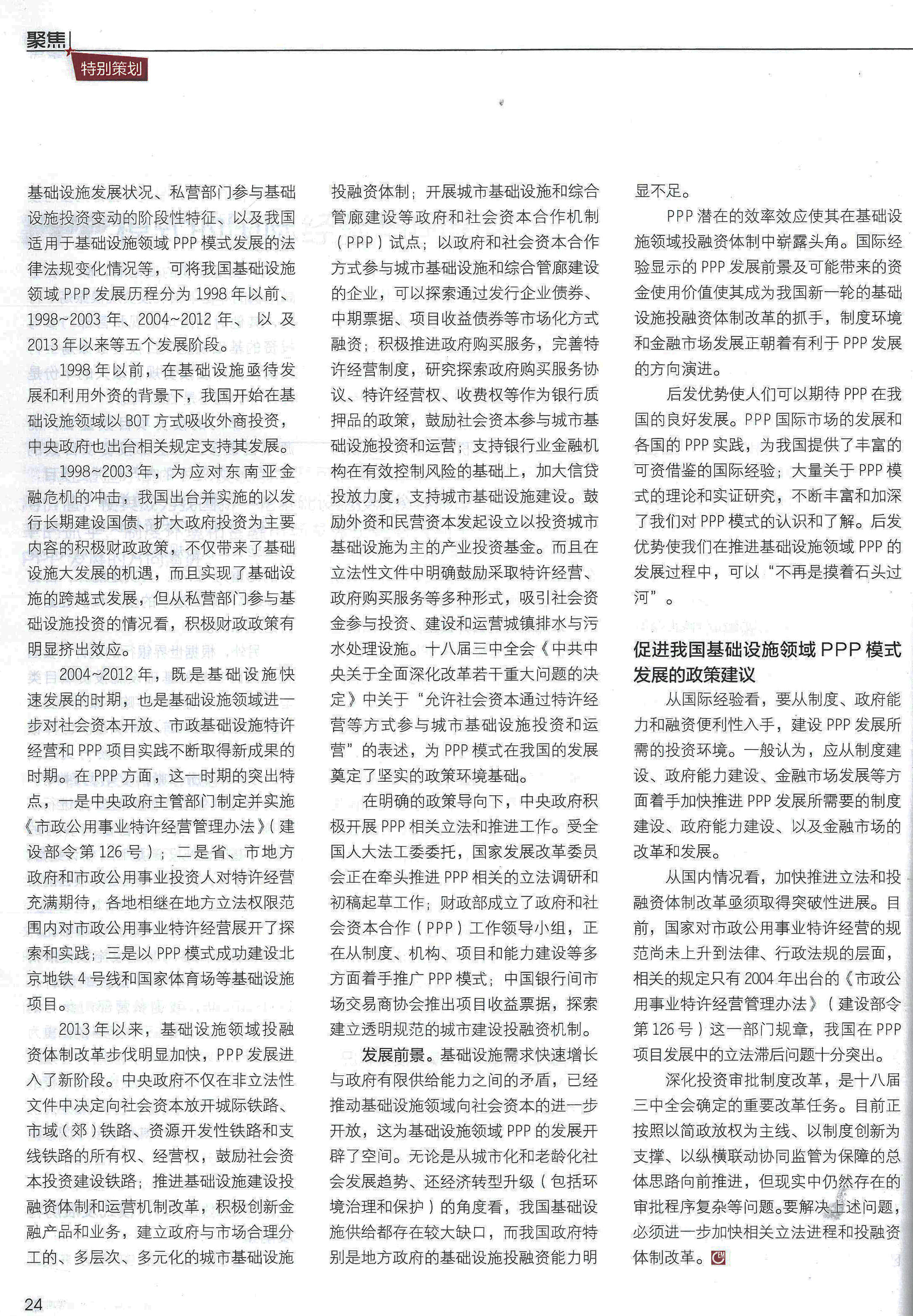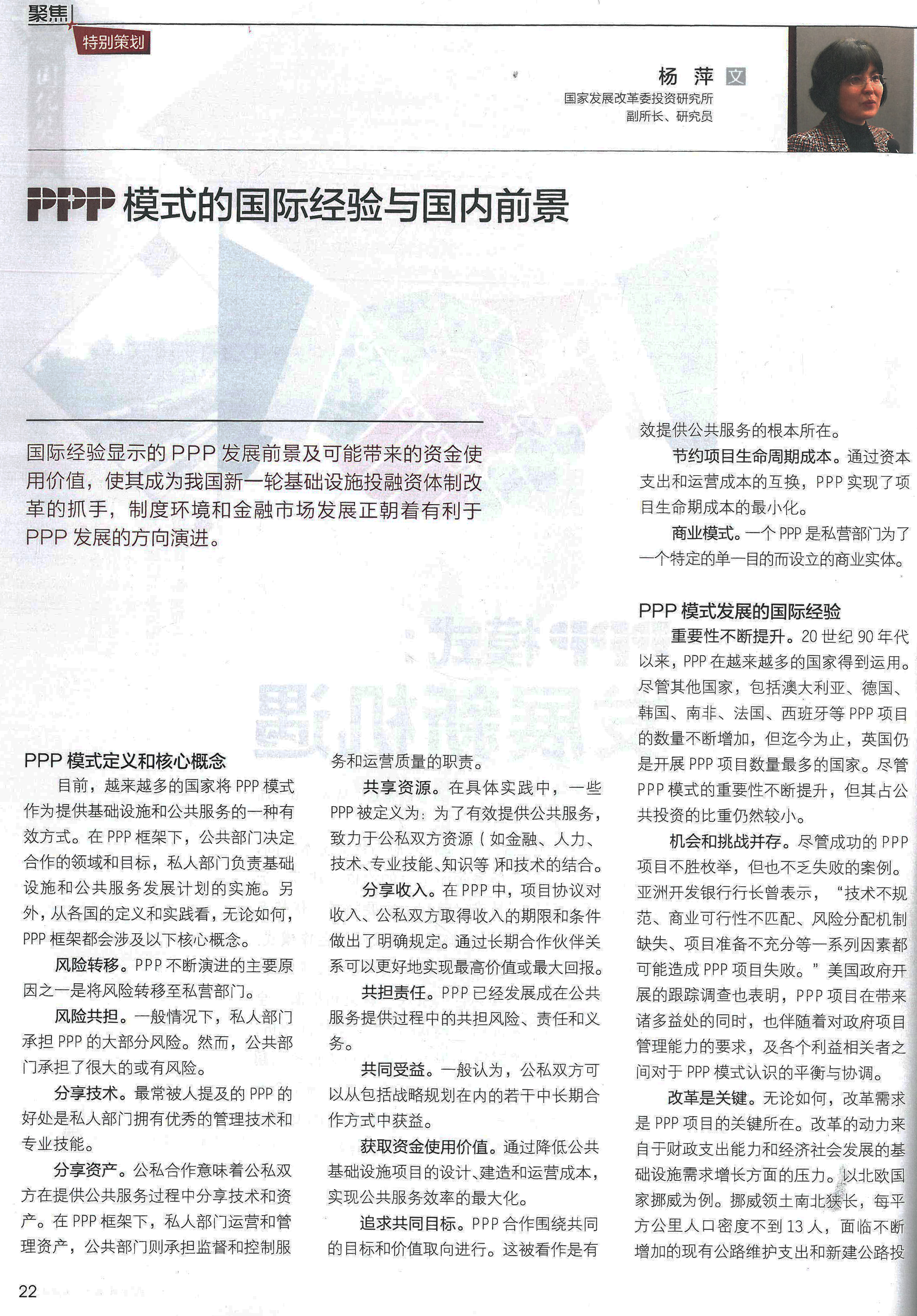 國(guó)際經(jīng)驗(yàn)顯示的PPP發(fā)展前景及可能帶來(lái)的資金使用價(jià)值,使其成為我國(guó)新一輪基礎(chǔ)設(shè)施投融資體制改革的抓手,制度環(huán)境和金融市場(chǎng)發(fā)展正朝著有利于PPP發(fā)展的方向演進(jìn)。