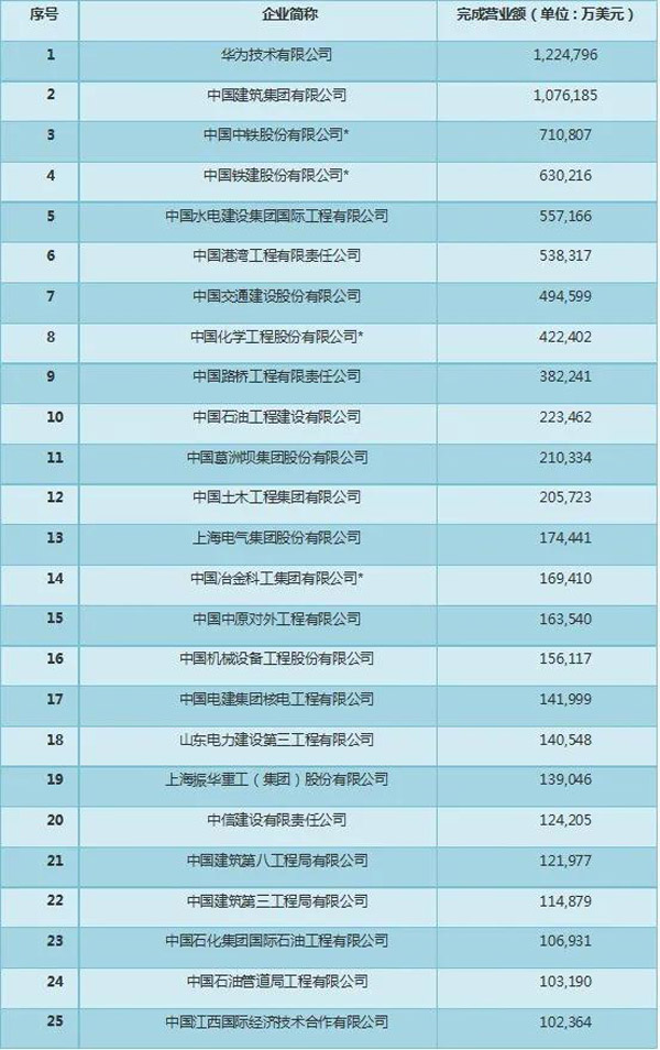 2月24日,商務部發(fā)布《2020年我國對外承包工程業(yè)務完成營業(yè)額前100家企業(yè)》榜單。