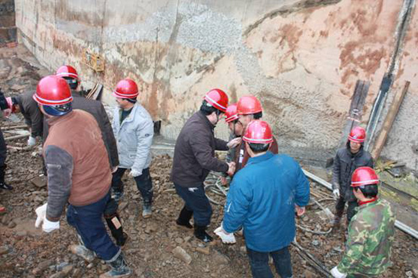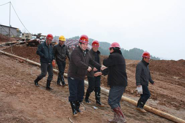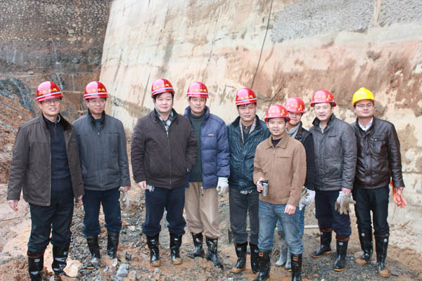 董事長(zhǎng)、總經(jīng)理王元旦一行首先來(lái)到基坑澆筑、混凝土攪拌站等施工現(xiàn)場(chǎng)進(jìn)行察看,與施工人員一一握手,并聽(tīng)取了春節(jié)期間帶領(lǐng)員工奮戰(zhàn)在施工一線的公司副總經(jīng)理聶玉和的生產(chǎn)情況匯報(bào)。董事長(zhǎng)、總經(jīng)理王元旦詳細(xì)詢問(wèn)了攪拌站的生產(chǎn)能力能否滿足施工要求,工程的進(jìn)展情況及后期施工中的各項(xiàng)措施,對(duì)項(xiàng)目部全體員工放棄節(jié)假日搶工期、保質(zhì)量、抓進(jìn)度的奉獻(xiàn)精神給充分肯定和高度評(píng)價(jià),他勉勵(lì)大家保證質(zhì)量安全的前提下,抓緊時(shí)間完成大壩防滲面板的施工、再苦再累也要咬緊牙關(guān)挺過(guò)去,并要求施工項(xiàng)目部合理安排好大家春節(jié)期間的工作和生活。