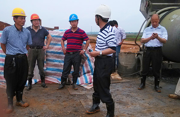 吳義泉總指揮現(xiàn)場查看舍邊電排站副廠房施工