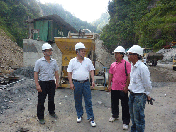 9月20日上午8時,王總一行抵達(dá)印尼棉蘭國際機(jī)場,隨即轉(zhuǎn)機(jī)前往PAKKAT水電站項目所在地。在項目經(jīng)理孫小軍等的陪同下,王總不辭辛苦深入到大壩施工區(qū),認(rèn)真察看了大壩、發(fā)電隧洞等施工現(xiàn)場,他與現(xiàn)場施工人員一一握手并表示節(jié)日的慰問。王總察看施工現(xiàn)場并聽取匯報后,對大壩的建設(shè)情況以及工程外觀形象控制表示滿意,并結(jié)合自己的經(jīng)驗(yàn)對豎井的施工提出了建設(shè)性建議,重點(diǎn)強(qiáng)調(diào)了豎井施工安全生產(chǎn)的重要性。