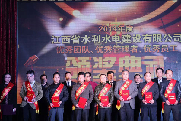隨后,公司總經(jīng)理徐洪良宣讀了2014年優(yōu)秀表彰決定,并與公司領(lǐng)導(dǎo)班子一起,為雙河二期項目部等6個優(yōu)秀團(tuán)隊、肖凱等10位優(yōu)秀管理者和周家煌等23位優(yōu)秀員工進(jìn)行頒獎。徐總要求,希望受到表彰的先進(jìn)集體和個人積極進(jìn)取、再接再厲,以更加昂揚的斗志投入到今后的工作中,創(chuàng)造出更加輝煌的成績;希望各單位和廣大員工以優(yōu)秀團(tuán)隊和先進(jìn)個人為榜樣,加強學(xué)習(xí),開拓創(chuàng)新,銳意進(jìn)取,為江西水建燦爛的明天而努力工作!