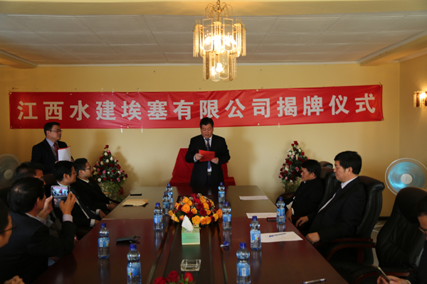 2015年4月26日埃塞當?shù)貢r間上午10點,江西水建埃塞有限公司在埃塞舉行揭牌儀式。公司董事長王元旦、總經理徐洪良、副總經理兼海外公司執(zhí)行董事張周平、副總經理兼海外公司總經理黃鄭民、副總經理王俊華等領導及在埃員工參加了揭牌儀式,公司董事長王元旦和埃塞有限公司總經理王毓平共同為埃塞公司揭牌并致辭。