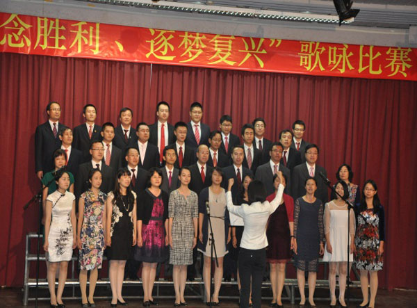 集團(tuán)資訊  9月24日,為慶祝中國人民抗日戰(zhàn)爭及暨法西斯戰(zhàn)爭勝利70周年,并歡慶中秋、國慶佳節(jié),江西省水利水電建設(shè)有限公司肯尼亞分公司參加了由中國駐肯尼亞大使館及肯中經(jīng)貿(mào)協(xié)會舉辦的第二屆合唱比賽。本屆比賽共有大使館、中航國際、中油石油、江西水建等十六家中資公司的幾百名人員參賽。