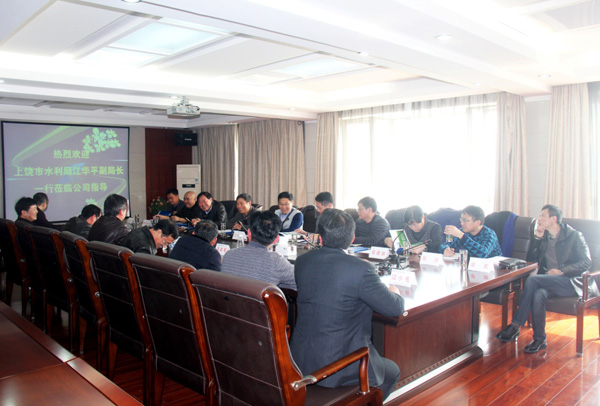 2月15日,上饒市水利局副局長江華平一行來公司就企業(yè)改制工作進行調(diào)研。公司董事長王元旦、總經(jīng)理徐洪良、黨委書記王延軍、副總經(jīng)理兼江西海外公司執(zhí)行董事張周平、副總經(jīng)理曾朝文等一同參加了調(diào)研座談。
