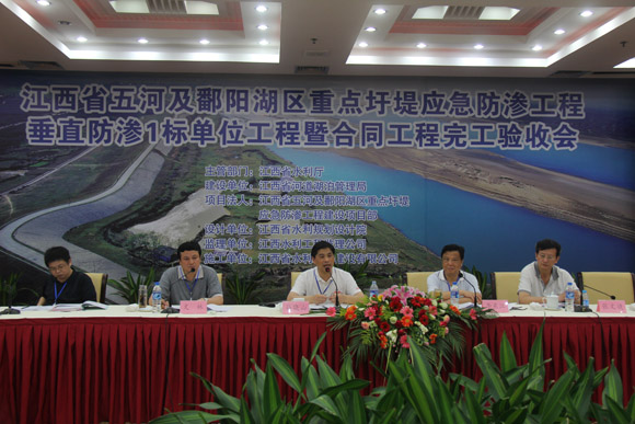 2011年5月8日,我公司承建的江西省五河及鄱陽湖區(qū)重點圩堤應(yīng)急防滲處理工程垂直防滲1標(biāo)單位工程暨合同工程完工驗收會在南昌市召開。省水利廳廳長孫曉山,廳紀(jì)委書記李東江,副廳長文林、廳總工張文捷,省發(fā)改委、省財政廳、省水利廳有關(guān)處室及有關(guān)單位負(fù)責(zé)人,南昌市水利局等領(lǐng)導(dǎo)出席了會議。