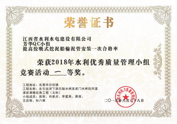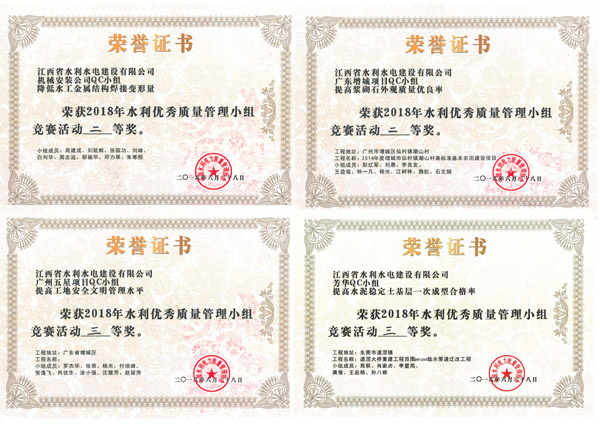 近年來(lái),公司注重質(zhì)量管理創(chuàng)新,積極開(kāi)展QC成果和技術(shù)攻關(guān)活動(dòng),工程質(zhì)量管理水平和企業(yè)創(chuàng)新能力不斷提升,已連續(xù)四年榮獲水利優(yōu)秀質(zhì)量管理小組競(jìng)賽活動(dòng)獎(jiǎng)項(xiàng)。