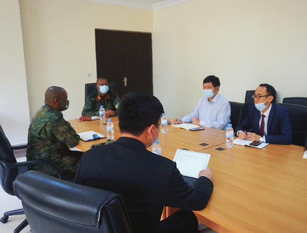 張周平一行會見了軍事學(xué)院項目業(yè)主--盧旺達(dá)軍事學(xué)院司令。雙方就疫情期間項目的施工情況進(jìn)行了充分的交流,氣氛熱烈融洽。雙方非常珍惜和重視此次合作,表示會全力支持推動項目進(jìn)展,并期待兩個團(tuán)隊在日后工作中能夠繼續(xù)保持積極有效的溝通,務(wù)實地解決施工難點,盡早完成預(yù)期建筑施工目標(biāo)。